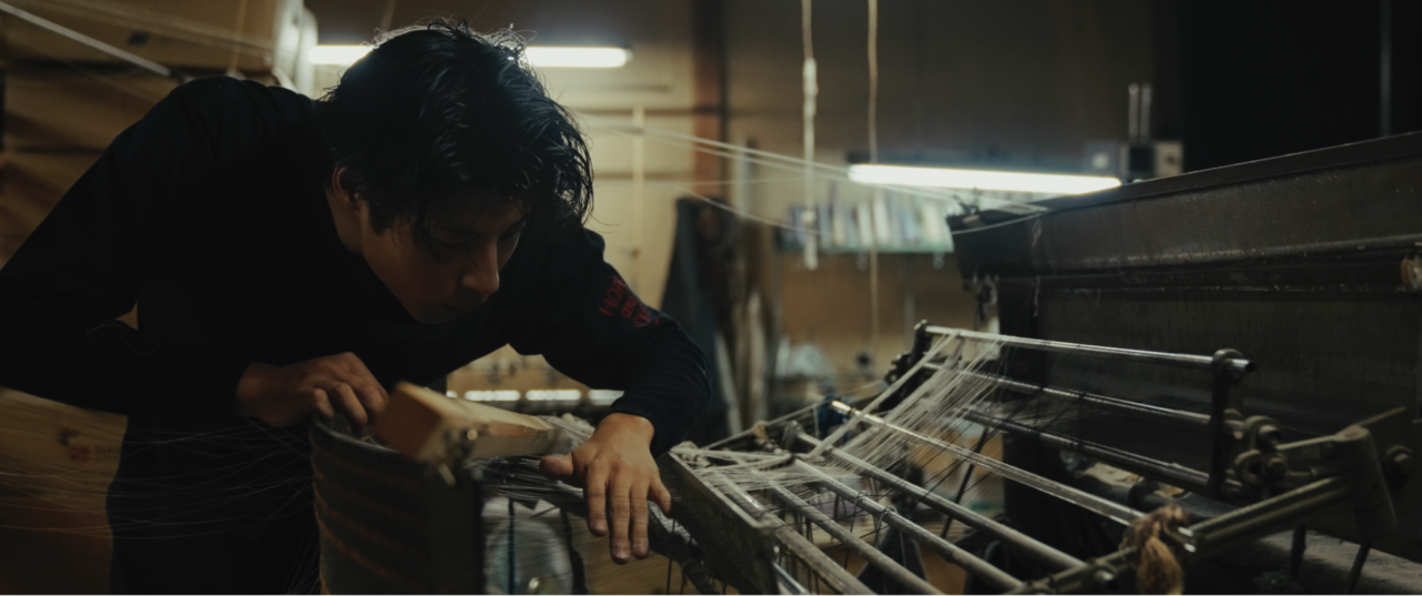 「当初は『MORI WO ORU』の世界観を伝えるために、日本の絹織物のものづくりの背景を紹介する短編動画を製作する予定でした。ですが、職人さんの思いや産地に根付く文化や風土に触れるうちに、チームの全員が製作に真剣に向き合うことになり、結果として1年がかりで64分のドキュメンタリー映画『森を織る。』を完成させました」