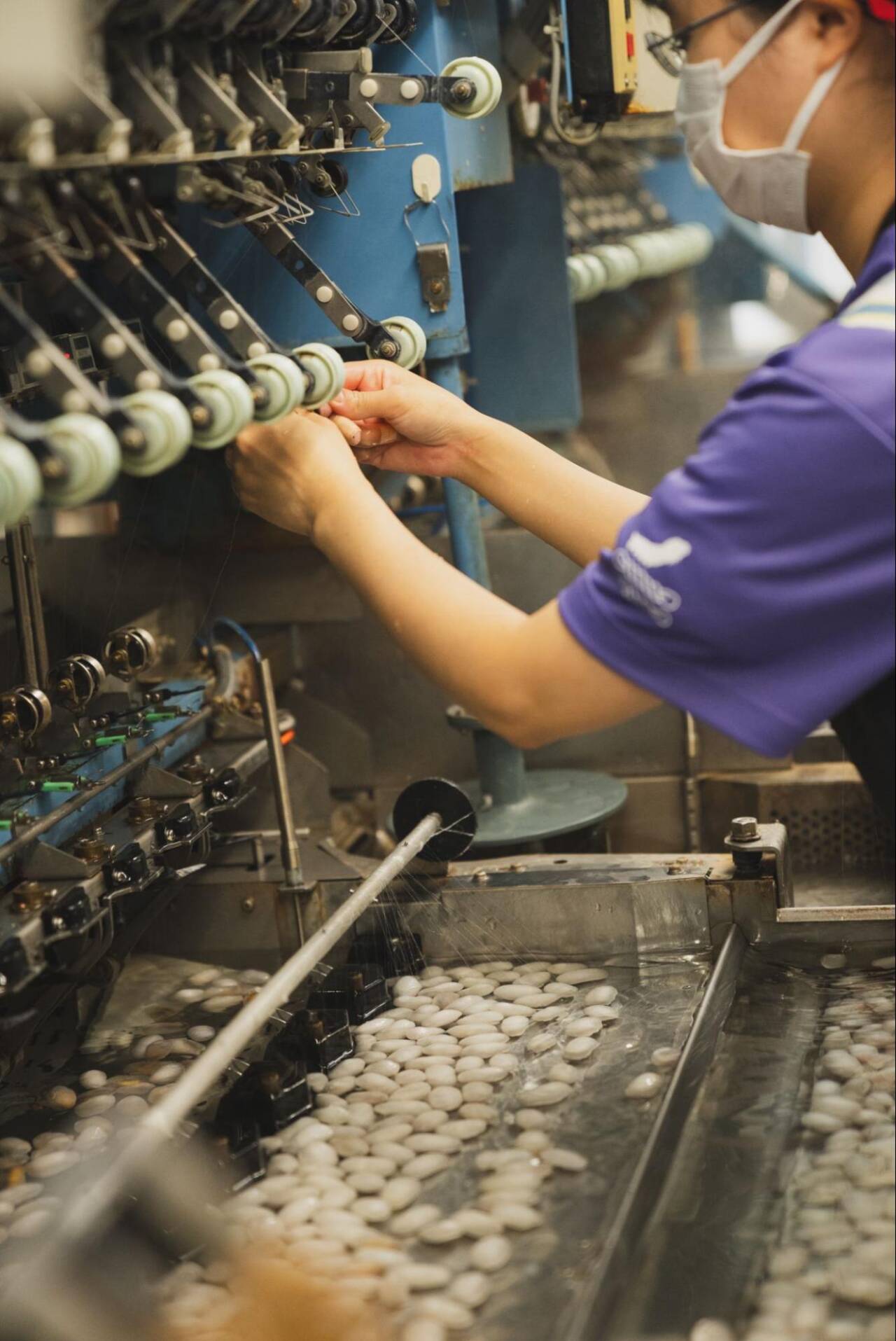 そこで生産された繭は、長野県岡谷市の製糸会社・宮坂製糸所に渡され、糸になる。岡谷市もかつては多くの製糸工場で栄えた一大絹産地であったが現在では宮坂製糸1社のみだと、岡谷蚕糸博物館の館長・髙林千幸さんは話す。