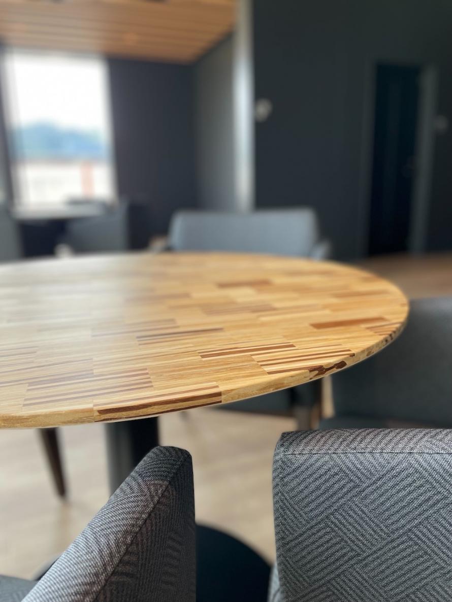 飲食店やホテルで年間43億膳廃棄されている竹割り箸を再利用しオフィス家具を製造しています。木製の割り箸は大手の製紙メーカーが紙製品などに再利用している一方で、竹割り箸は繊維が固く再利用されてきませんでした。その竹割り箸の固さを活かし一点物の家具を作っています。