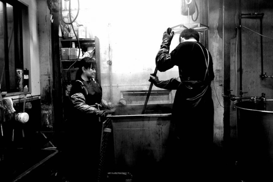 150年以上の歴史を持つ「京の黒染屋」。着物だけでなく、色あせや汚れがある洋服を黒に染め直し、再び着られる一着へと再生しています。黒の色味は、自然な黒から“黒より黒い”漆黒の「秀明黒」まで選択可能。染め直しに合わせてボタン交換や修理も行い、洋服を長く大切に着続ける文化を提案しています。千利休も愛した「柳の水」を使い、一着一着を丁寧に染め上げています。