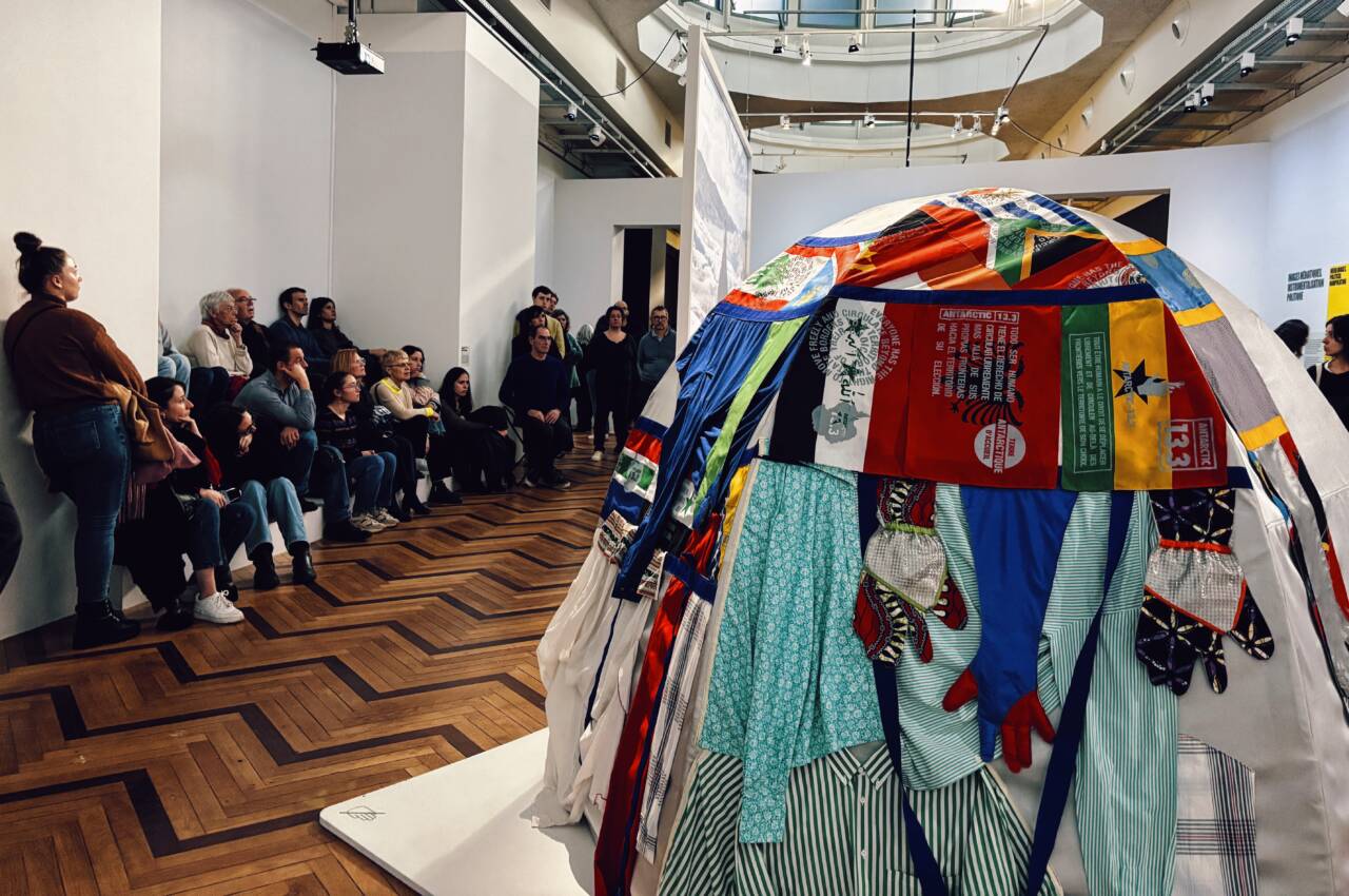 フランス国立移民史博物館の企画展「Climat et Migrations(気候と移住)」展より。世界各地の移民の衣服で覆われたテント作品は、気候変動によって移動を余儀なくされる人々の現実と、そこに宿る希望を象徴している。| Lucy + Jorge Orta, « Antarctic Village – No Borders », 2007-2021.