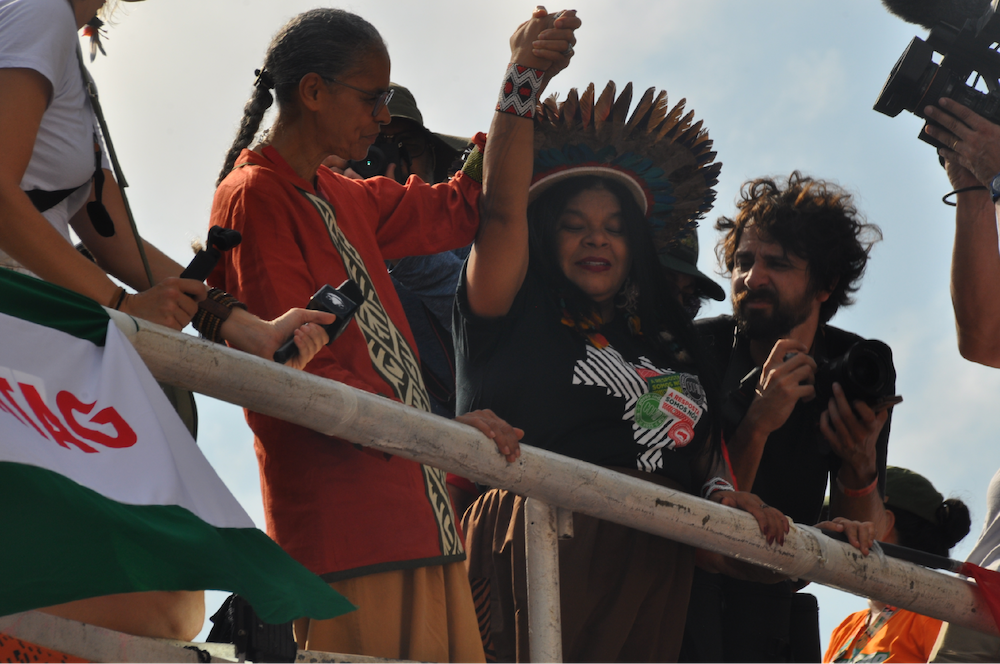 マーチのメイン車両には、環境・気候変動省大臣マリナ・シルバと先住民族省大臣ソニア・グアジャジャラの2人が登壇し、行進への支持を表明した。マリナ大臣は次のように語った。