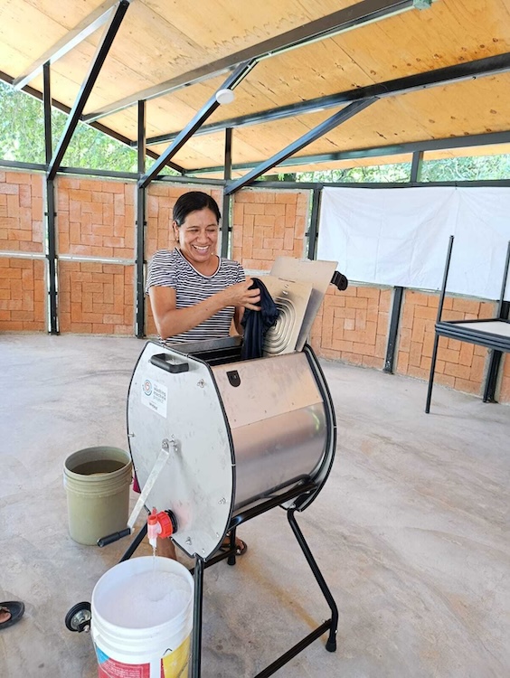 この問いに一つの答えを示すのが、「手洗いの負担をなくす」ことをミッションに掲げるイギリスの社会的企業・The Washing Machine Project(TWMP)が開発した、電力不要の手動洗濯機「Divya」だ。洗い方は、座ったままハンドルを回すだけ。手洗いと比較して洗濯時間を最大75%、水の使用量を最大50%削減する。