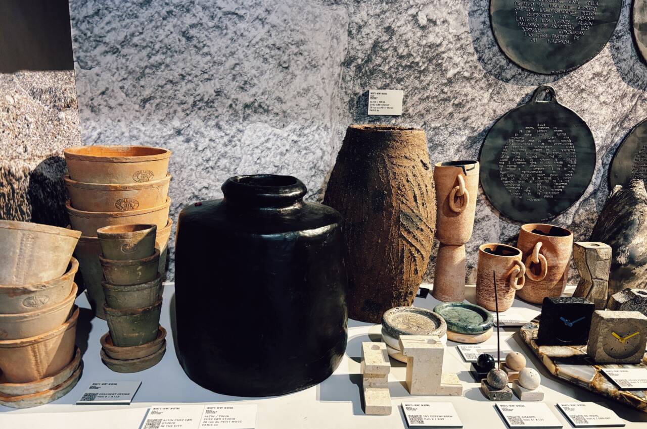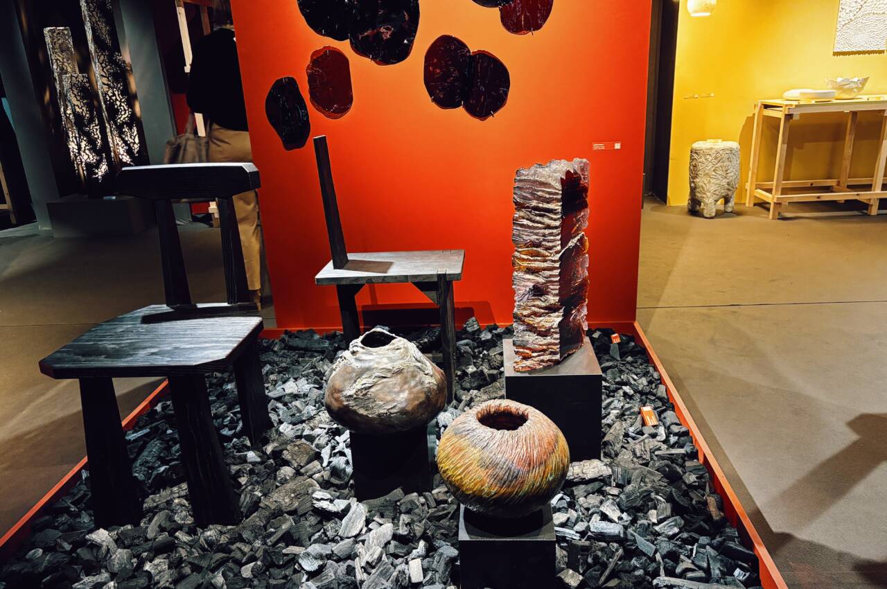大地、萌芽、融合、秘匿をテーマにした、 Elizabeth Leriche氏による展示。工房でのみ制作された一点ものや小ロット作品が置かれた。