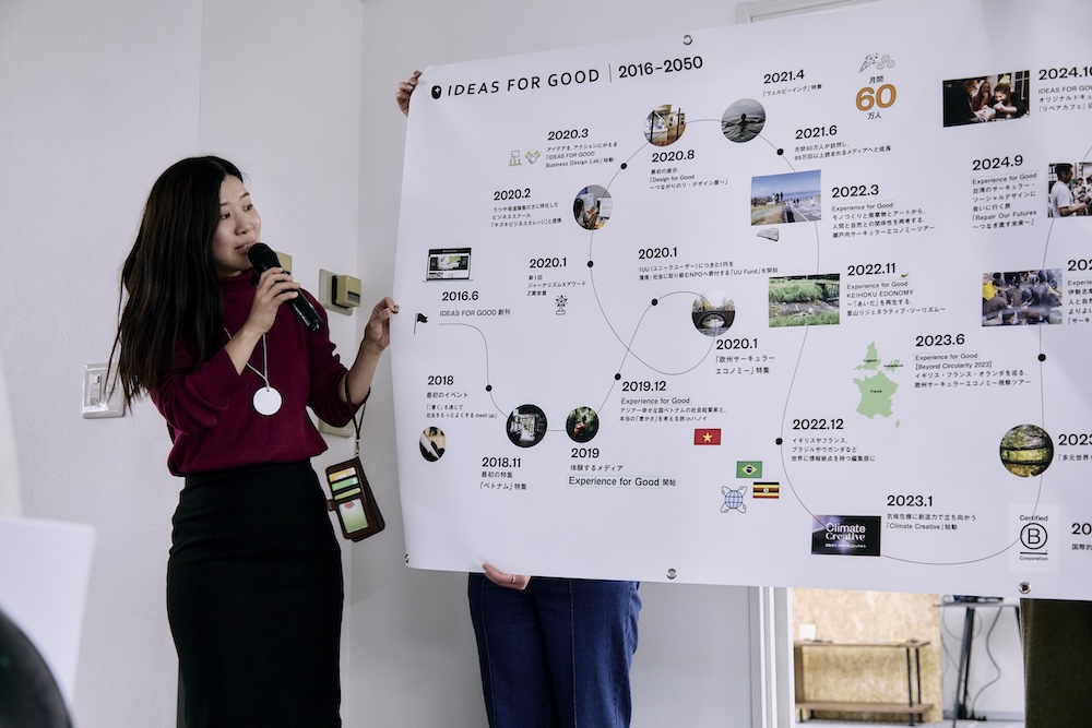 イベントの終盤では、IDEAS FOR GOOD編集部のこれまでの歩みとこれからのビジョンを共有。2016年の創刊以来、ポジティブな解決策を発信し続けてきた中、コロナ禍を経て「一つの解決策だけでは複雑な社会課題に対処できない」という現実に直面しました。