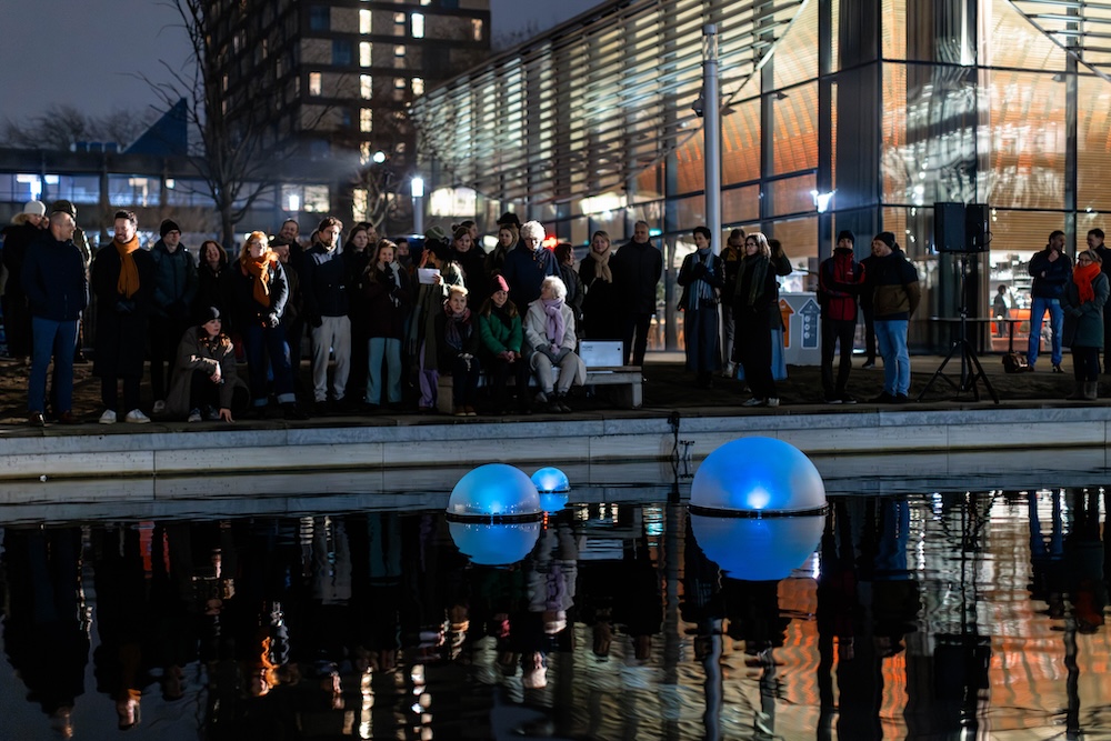 さらに、デジタルツイン技術を活用し、離れた場所からでもPONDの光を確認することができる。筆者が見てみると、2026年2月18日現地時間23時頃、ロッテルダムのエラスムス大学のPONDは青白く光っており水は比較的健康な様子だった。
