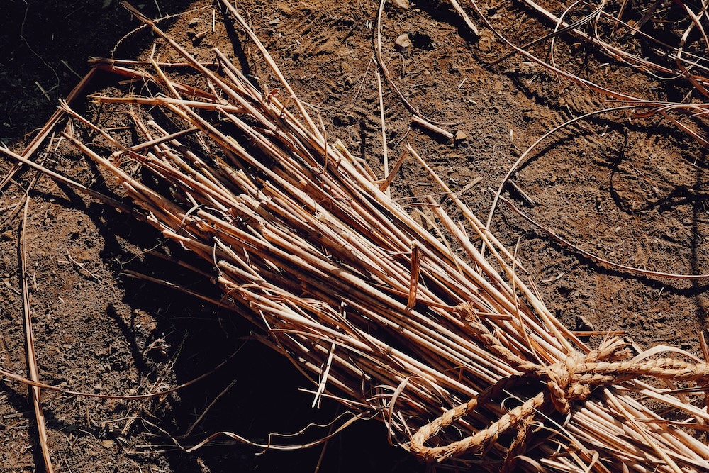 1月末、筆者は季節はずれの陽気に包まれ、草刈り機の「キィーンキィーン」という音を聞いていた。目の前にあるのは香ばしい色をした茅。地域で守られている茅葺き住宅の屋根の素材である茅を、乾燥させ貯蔵しておくのだ。